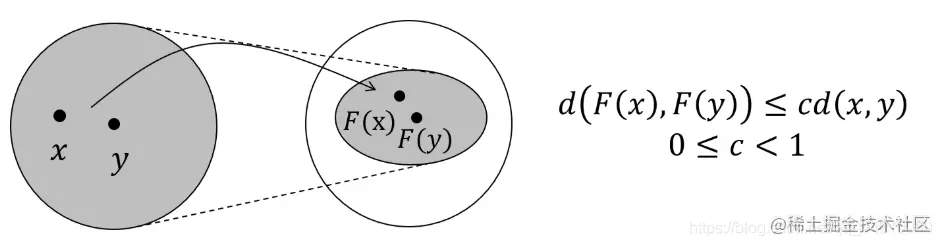 经过F变换后的新空间一定比原先的空间要小,原先的空间被压缩了。想象这种压缩的过程不断进行,最终就会把原空间中的所有点映射到一个点上。这就可以类比于不断更新的隐藏状态参数,经历数次的迭代得到趋于稳定的H值之后将它看作是最后映射成为的不动点。与现代GNN区别,F的参数是一个堆叠,每一层都一样的。