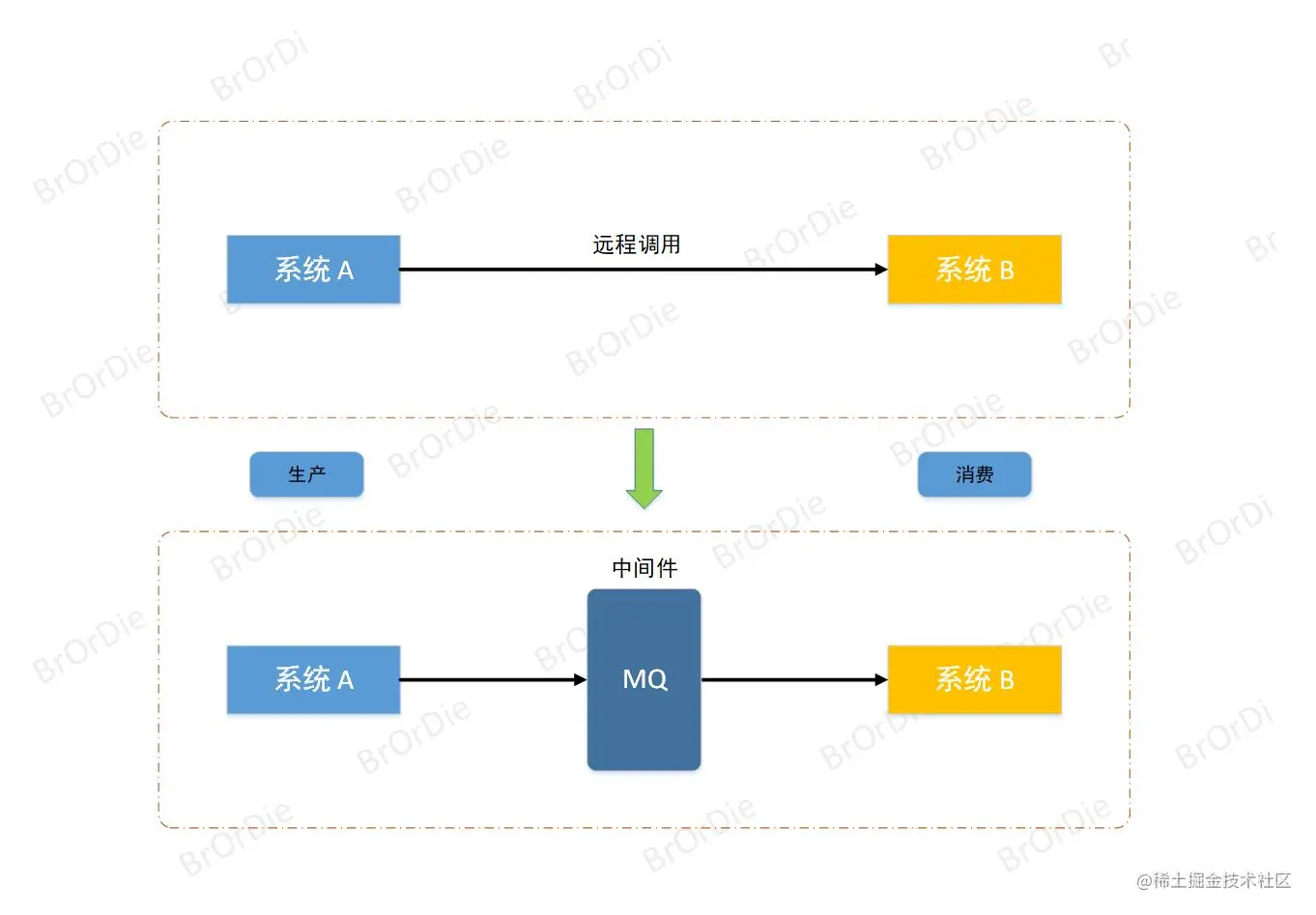 MQ相当于一个中介,生产方通过MQ与消费方交互,避免了两个系统之间的直接交互,从而实现系统解耦。系统内部的耦合性越高,关联就越强,容错性就会降低,一旦部分发生错误将会引起大量的系统功能错误,也会降低系统的维护性。