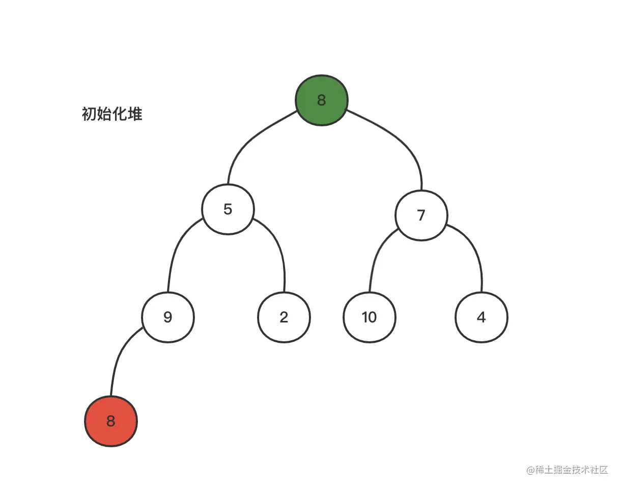 - 建堆,一般是通过节点下沉的方式建堆,即从最后一个非叶子节点开始,依次执行下沉操作,调整达到堆的平衡性