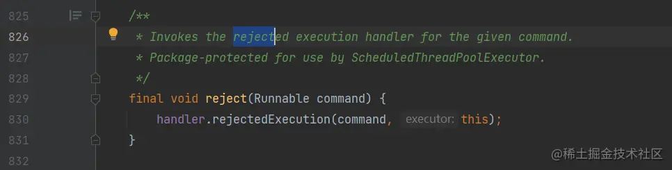 又比如ThreadPoolExecutor这个线程池的类,在构造方法中传入拒绝策略,在reject方法中根据不同的拒绝策略执行具体的拒绝方法: