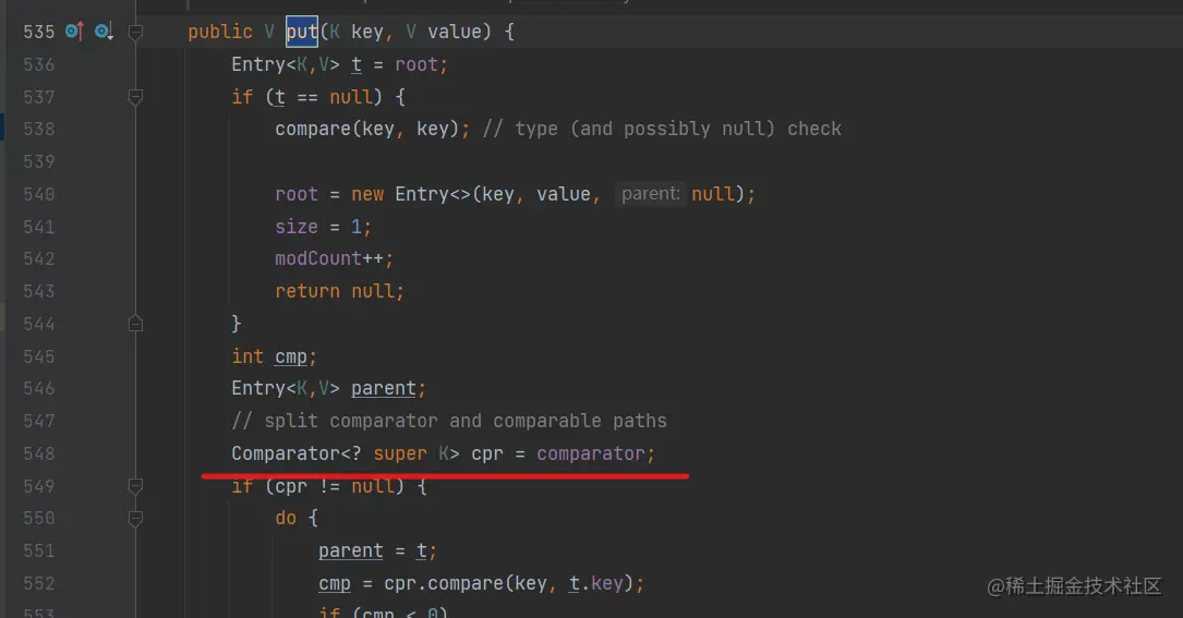比如TreeMap在构造方法中引入Comparator排序策略,在put方法时根据不同的排序策略执行不同的排序方法: