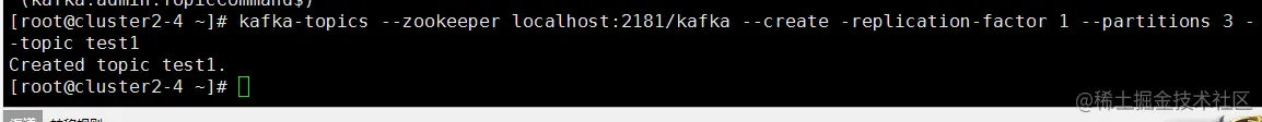 如果这里设置 zookeeper.chroot 为 /kafka。那么对应的,我们需要在/kafka 路径下创建topic。所以创建topic指令如下:
