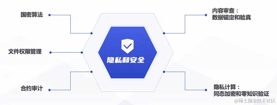 在安全方面,海峡链实现了一整套安全解决方案,包括:网络准入机制、文件权限管理机制、内容审查机制、密钥管理机制、合约审计机制等。同时,海峡链支持完整国密算法体系,支持同态加密和零知识证明的隐私计算,在最大程度上保障链上数据的隐私和安全。