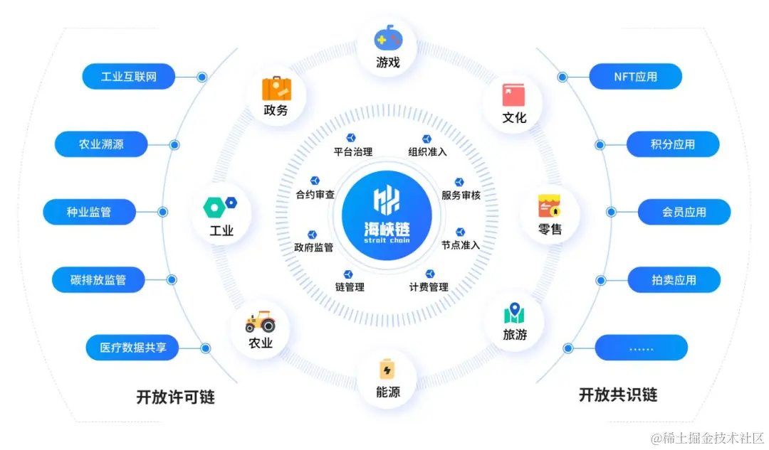 在应用方面,海峡链采用兼容多链架构,设计模块化功能组件,独立封装接口,提供多语言SDK开发工具等基础设施,以满足政府、企业、个人开发者的多样化业务需求。开发者可以通过海峡链的应用服务市场,为更多的企业组织,提供成熟、安全、可靠、便捷的区块链应用,同时,应用服务市场也为区块链开发者提供变现渠道。