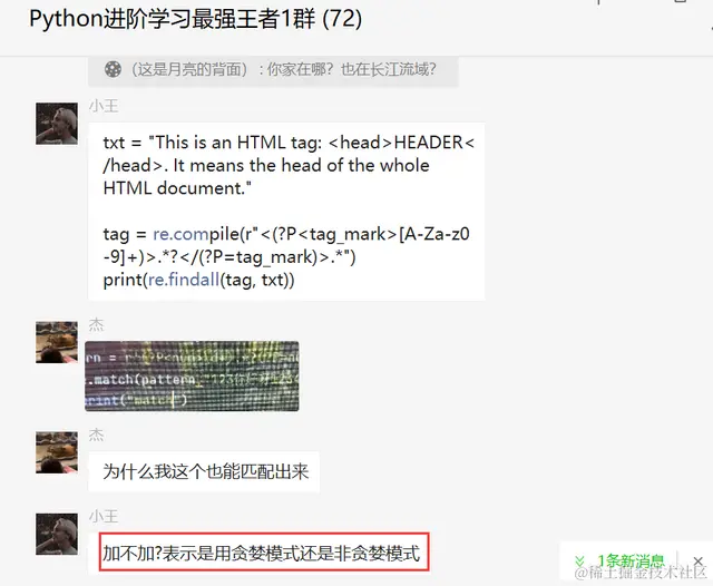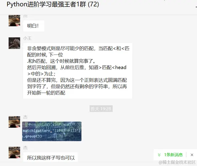 前几天在Python最强王者交流群有个叫【杰】的粉丝问了一个关于Python正则表达式的问题,其中涉及到Python正则表达式中的贪婪模式和非贪婪模式,讨论十分火热,这里拿出来给大家分享下,一起学习。