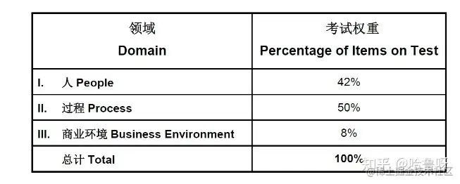 目前PMP有所改革,所以考试主要包括三个大部分,即:人员、过程、业务环境。