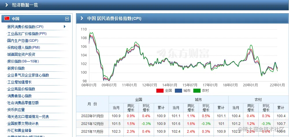 既然是数据获取,就需要找一个权威的网站获取 cpi 和 ppi 的数据,这里小编采用东方财富网的数据,这里直接给出页面的访问地址: