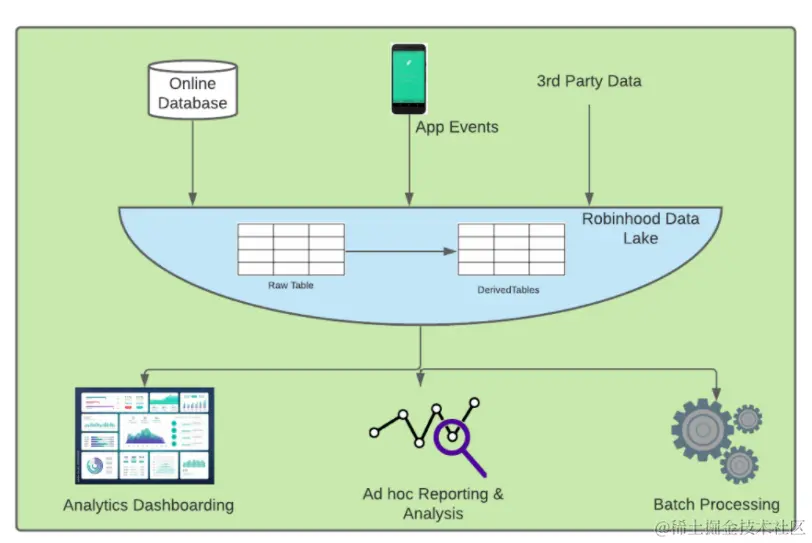 Robinhood 的数据湖存储和计算基础架构是为我们的许多数据驱动功能提供支持的基石,例如业务分析仪表板和产品改进见解。它也是为业务和临时报告和分析运行大规模数据处理的数据源。此外,生态系统会影响以隐私为中心的原语,例如旨在保护用户隐私的匿名化和访问控制。