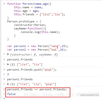 要解决上面的问题,我们可以组合使用构造函数模式和原型模式,对于私有的属性,在构造函数中定义,对于共享的属性在原型中定义。