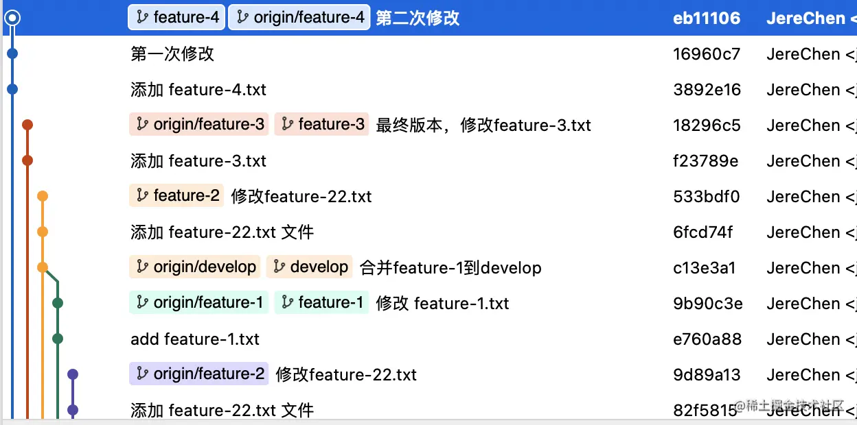 当然,你也可以通过刚刚介绍的撤销本地提交做到,这边就不再次展示了。