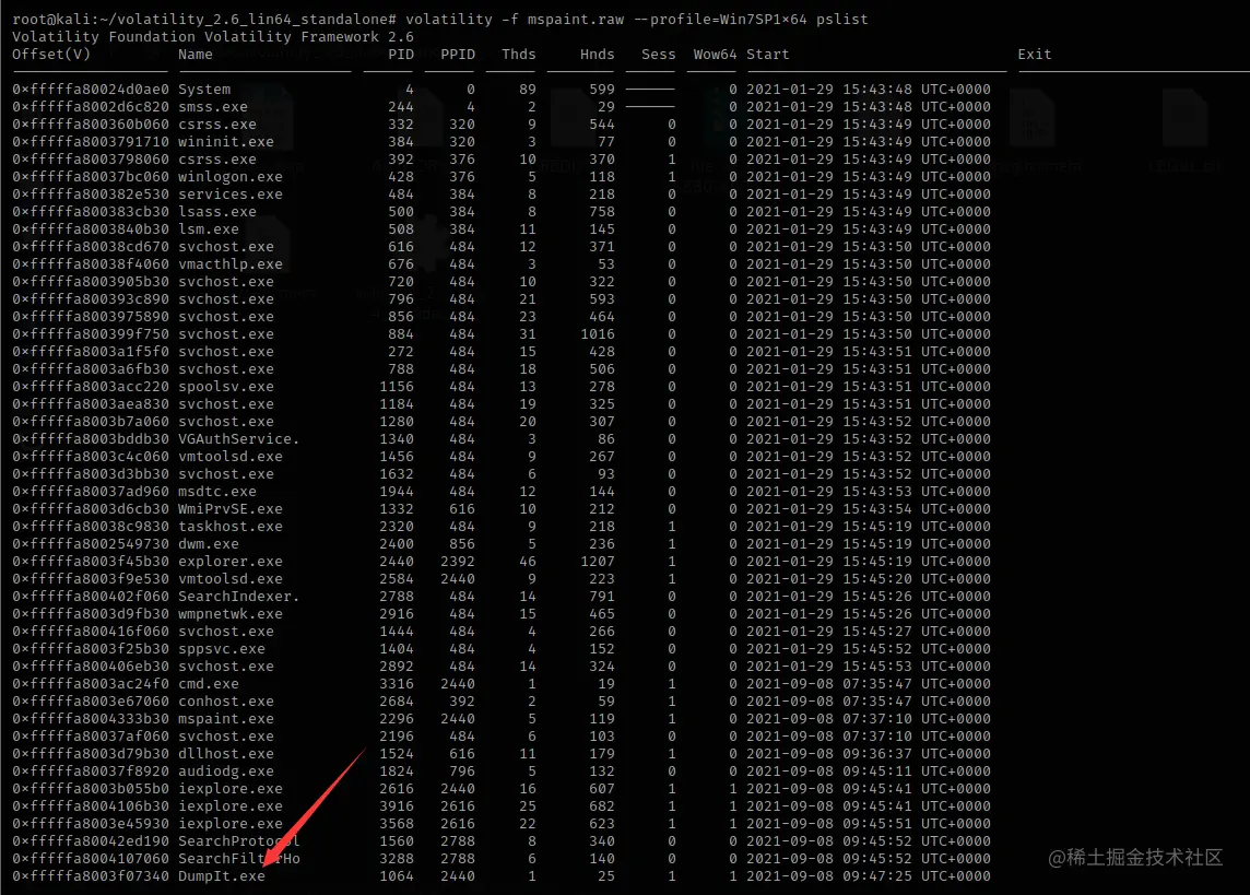 在此题目中,一开始pslist的时候发现有个dumpit.exe,我们尝试将其dump出来