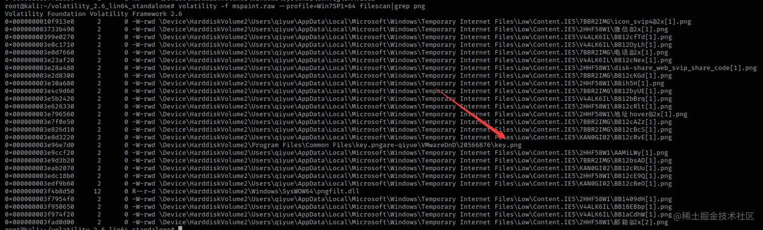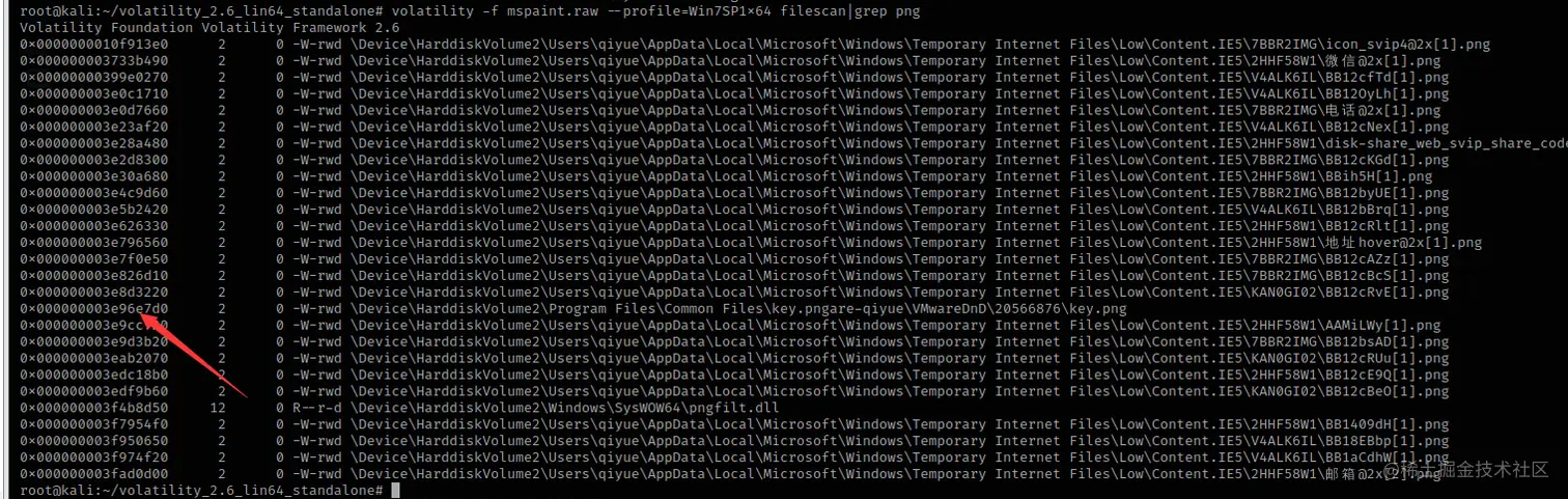 volatility -f mspaint.raw --profile=Win7SP1x64 filescan|grep png