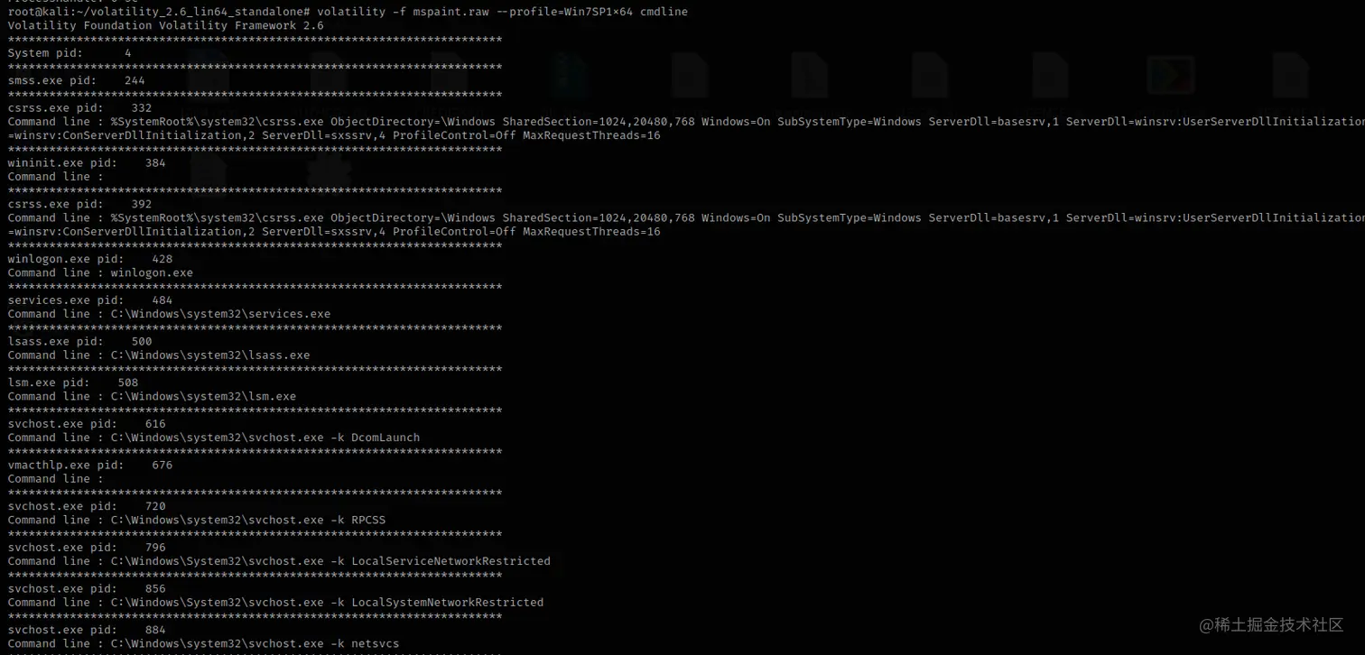volatility -f mspaint.raw --profile=Win7SP1x64 cmdline