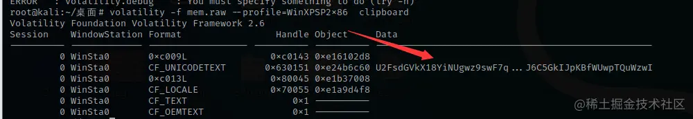 volatility -f mem.raw --profile=WinXPSP2x86 clipboard -v >1.txt
