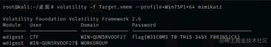 volatility -f Target.vmem --profile=Win7SP1x64 mimikatz