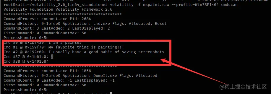 volatility -f mspaint.raw --profile=Win7SP1x64 cmdscan