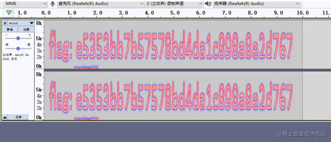 查看频谱图,flag隐藏在了频谱里