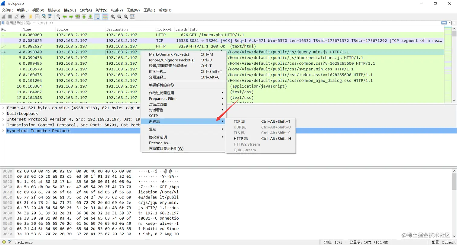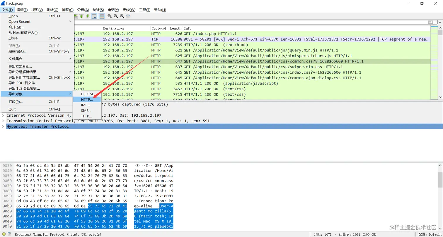 如果发现流量包传输了什么文件,可以使用导出对象-HTTP(常见)