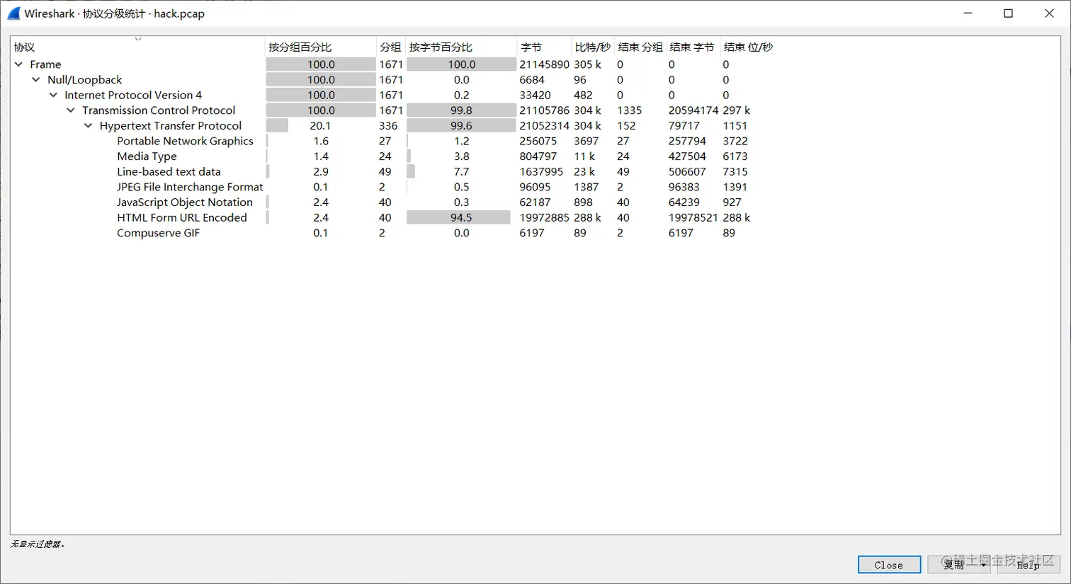 可以通过查看协议分级,实现对存在协议的一个总体把控