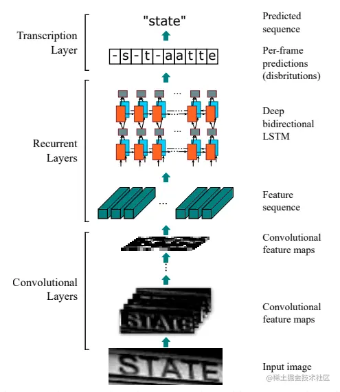 CRNN网络结构包含三部分,从下到上依次为: