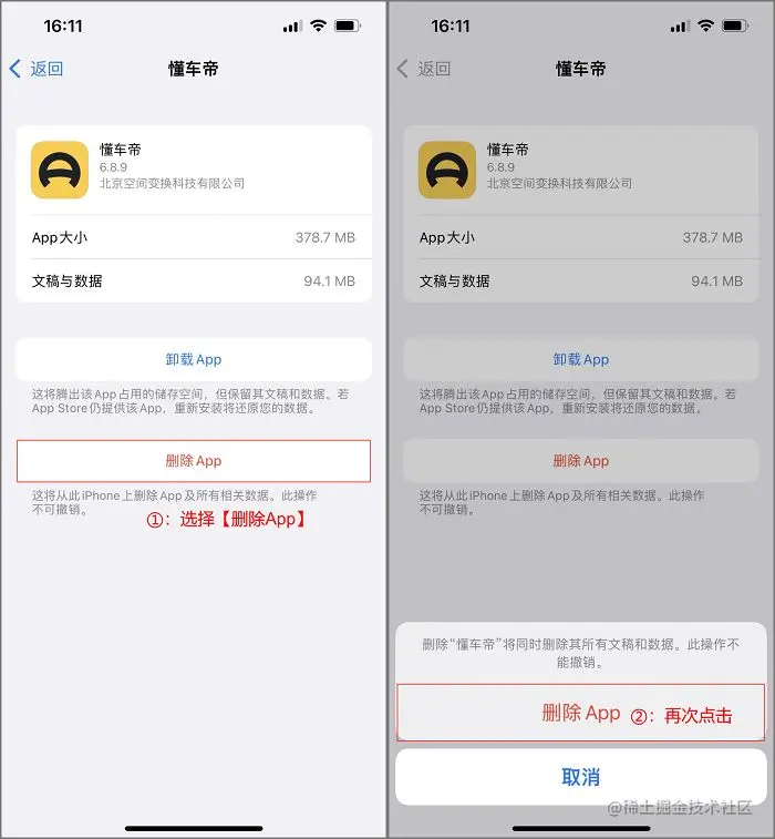备注:卸载App:将腾出该App占用的储存空间,但保留其文稿和数据。若App Store仍提供该App,重新安装将还原您的数据。 删除App:这将从此iPhone上删除App及所有相关数据。此操作 不可撤销。