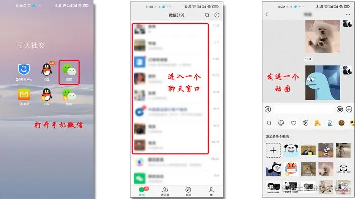 步骤1.打开你的微信后,随便进入一个聊天窗口,随后发送一个动态表情或者动态图片;