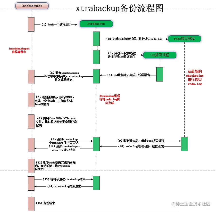 Xtrabackup备份流程图(xtrabackup备份过程中,先备份innodb表,再备份非innodb表):