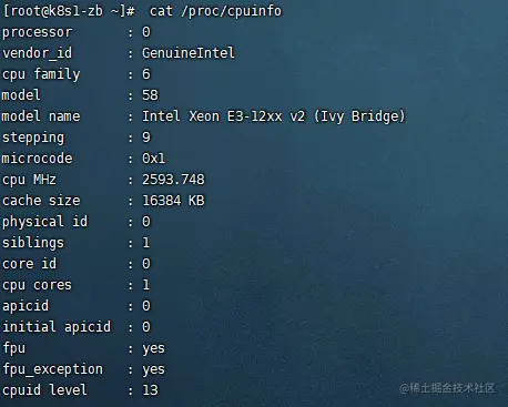 [root@k8s1-zb ~]# cat /proc/cpuinfo | grep name | cut -f2 -d: | uniq -c