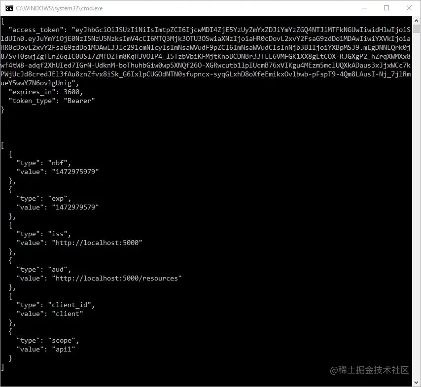 接下来,可以使用发现文档中的信息向IdentityServer请求令牌以访问api1: