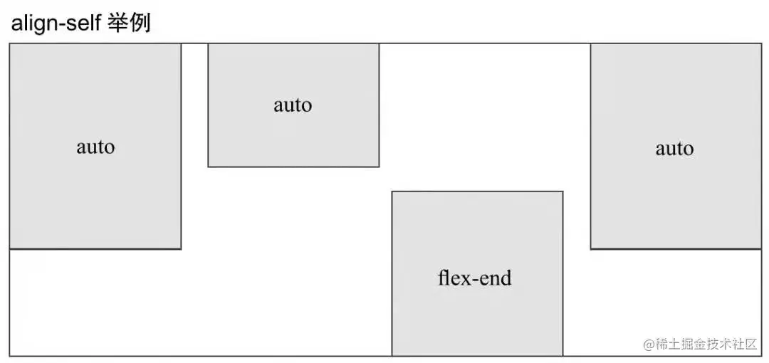 - auto:表示继承容器的align-items,如果没有父元素,则等同于stretch,默认值