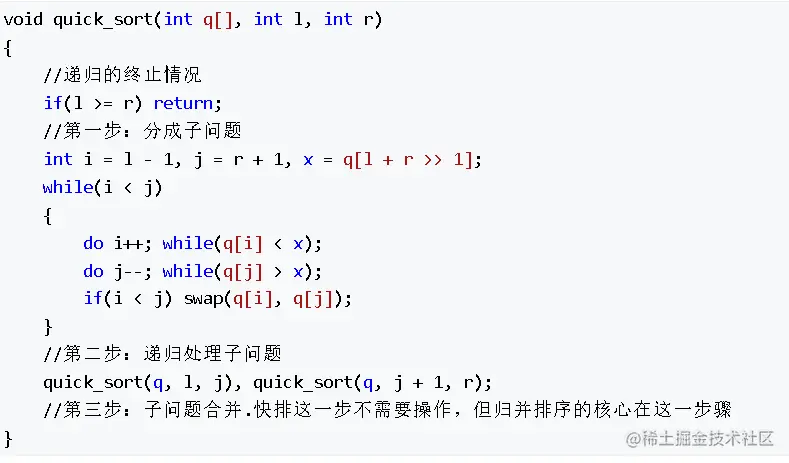 if (l >= r) return; // 如果左边大于右边的话我们就不用排序了
