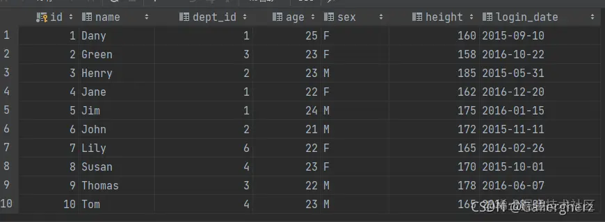没有id = 7的学生信息,因为我们查找条件是 tb_student_info.dept_id = tb_departments.dept_id;
