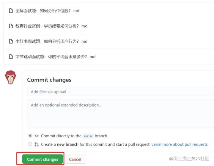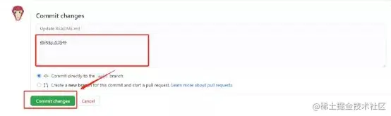 可在下图灰色区域(下图红框)的地方记录这次修改的内容。修改结束后,点击提交修改( Commit changes) 。
