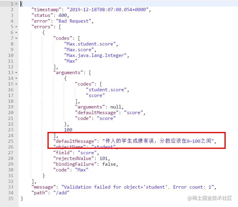@Max(value = 100,message = "传入的学生成绩有误,分数应该在0~100之间")