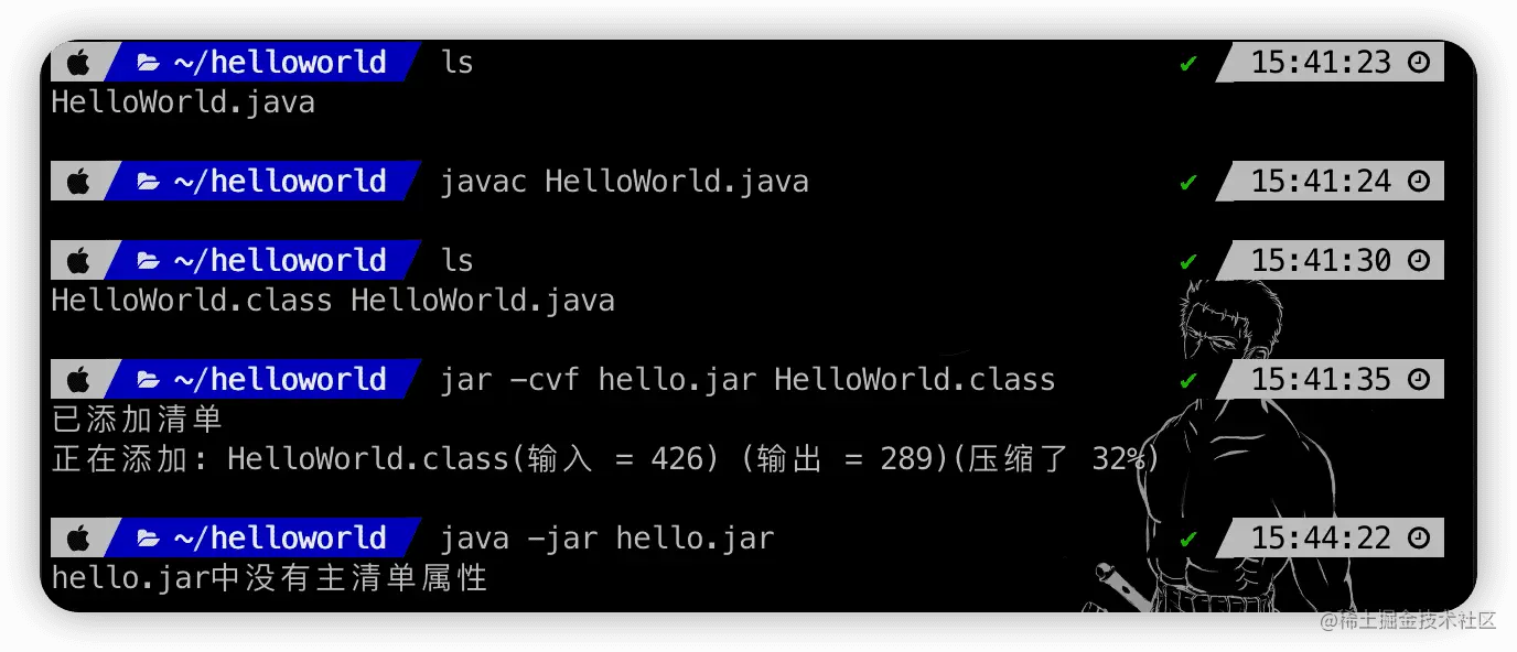 不过那是借助工具来生成的,今天我们来看看如何利用 JDK 所提供的命令行工具,来创建一个能打印出 Hello World! 的 jar 包。