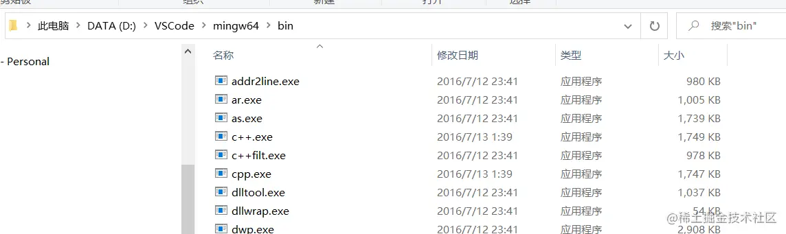 ( 4 )进入MinGW编译器的bin文件路径下,上面我们复制过,比如我的就是D:\VSCode\mingw64\bin,根据自己的选择。
