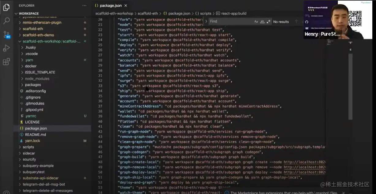 活动中,Henry 重点为大家演示了 Scaffold-ETH 的应用,简介项目的架构,演示了如何修改 Scaffold-ETH 配置、部署 Dapp 和验证智能合约。