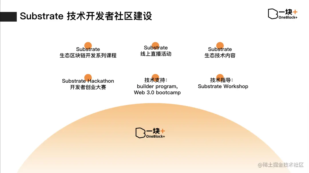 与此同时,OneBlock 也是 Parity 在亚洲的唯一运营合作伙伴,Substrate 技术开发课程独家合作伙伴,致力于普及 Substrate 技术知识,培养 Substrate 生态开发者。