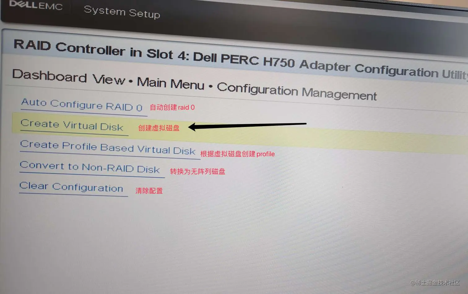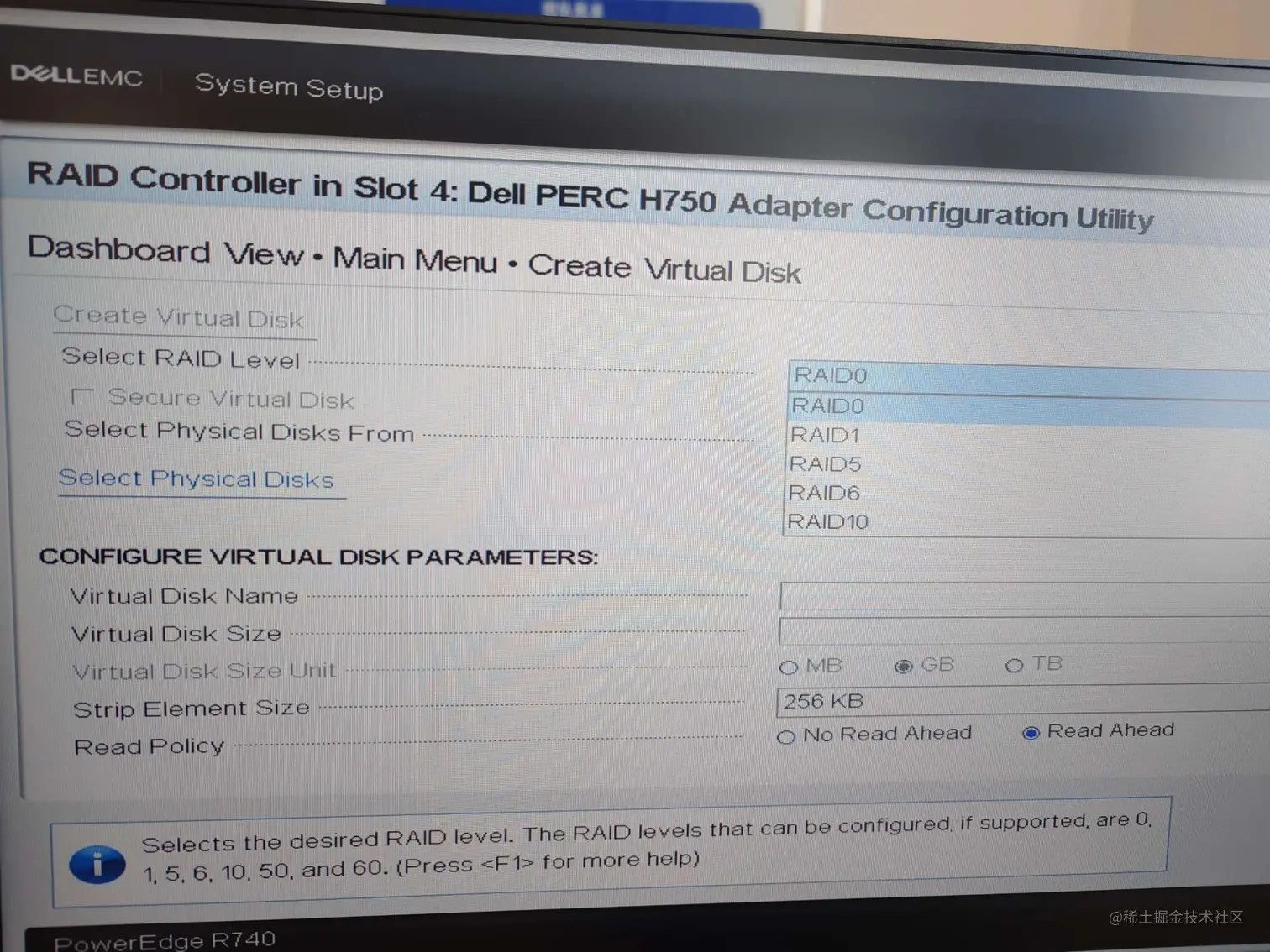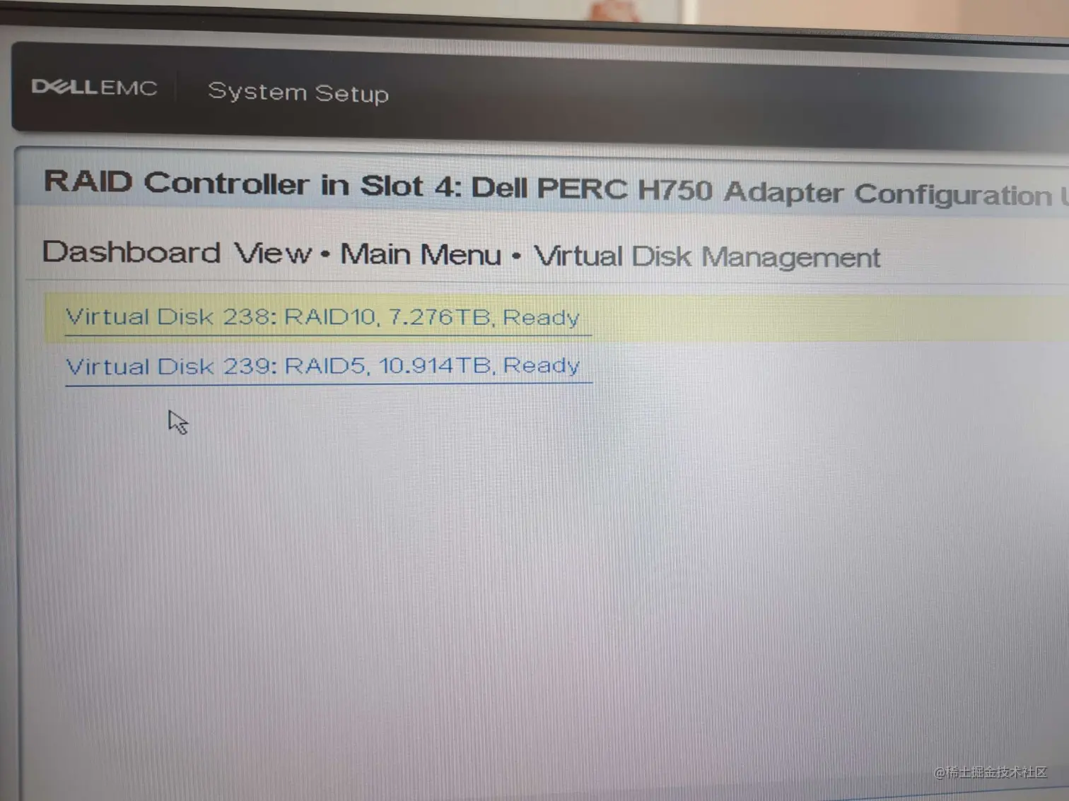 组完Raid之后,还有一个创建虚拟磁盘的步骤,相当于格式化,将Raid下的硬盘整合成一整块磁盘,这里未截图,可根据引导配置。