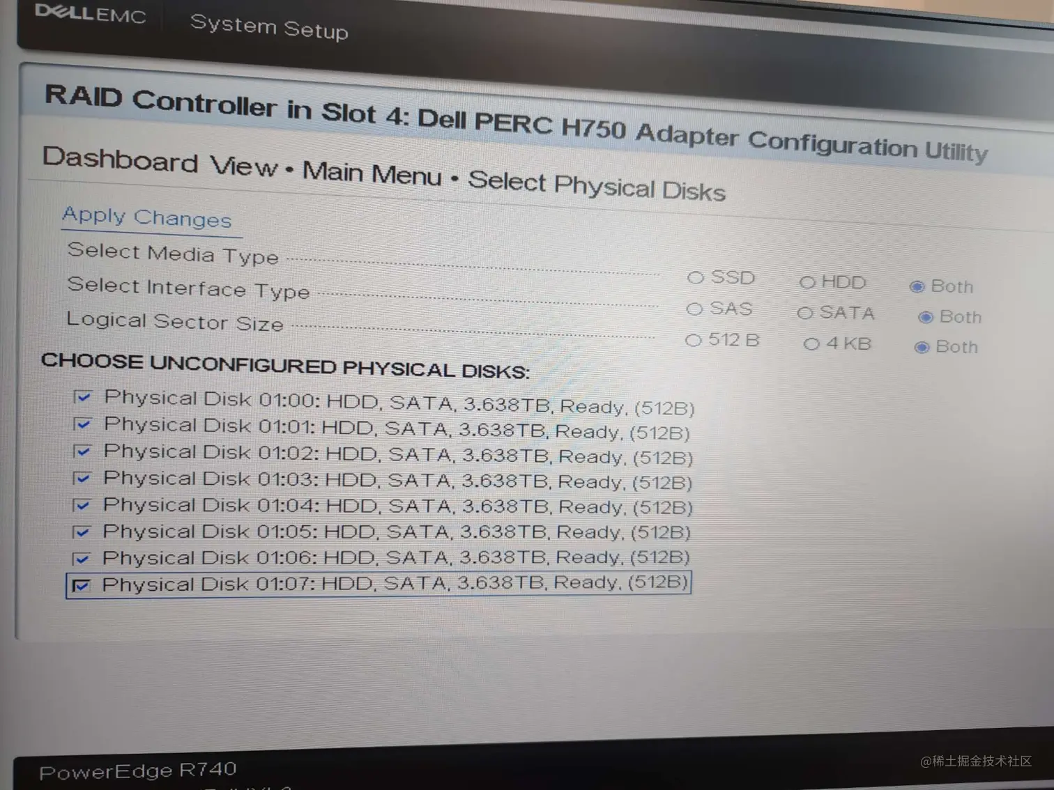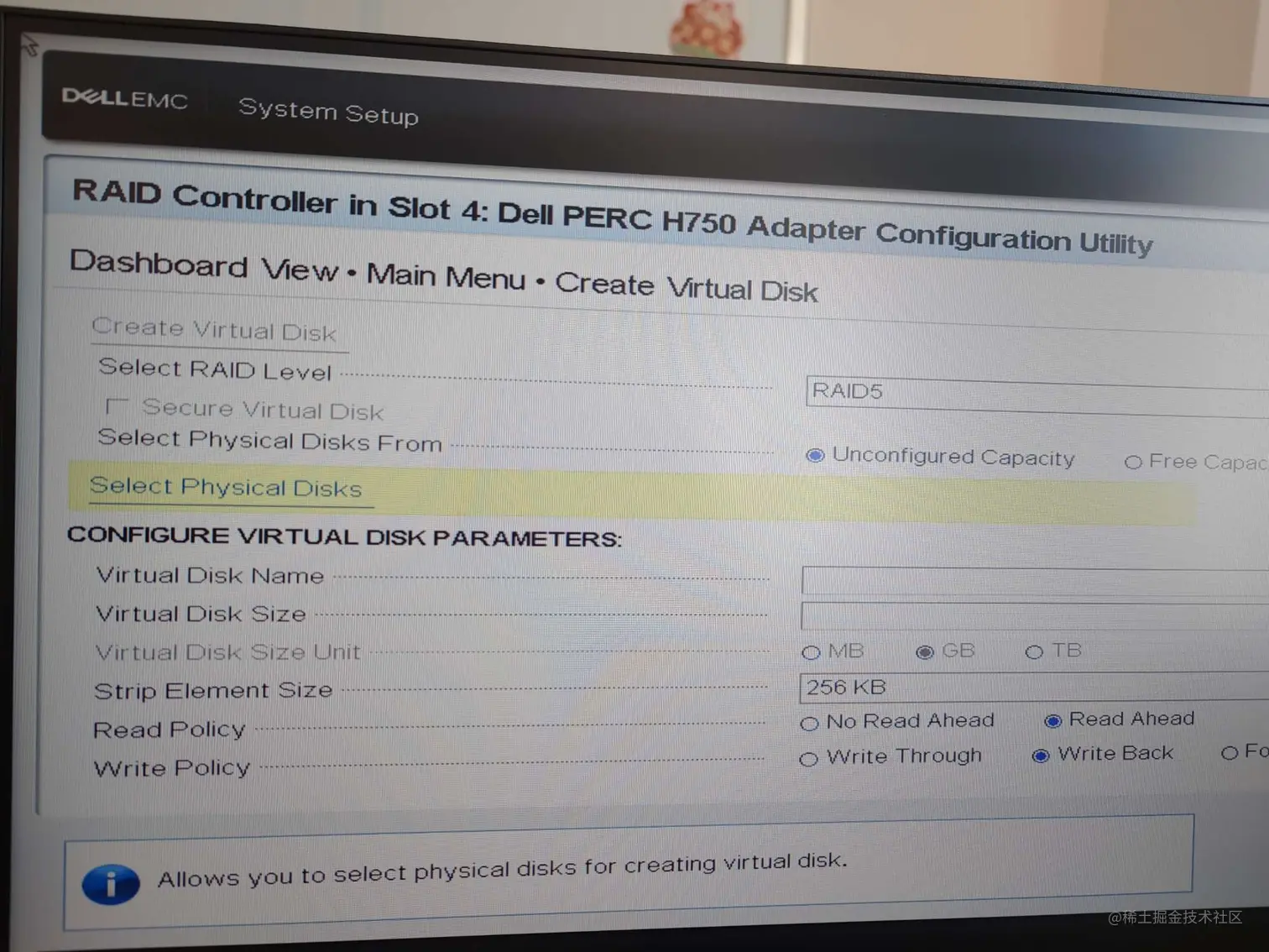 点击“Select Physical Disks”,选择我们Raid下的磁盘。