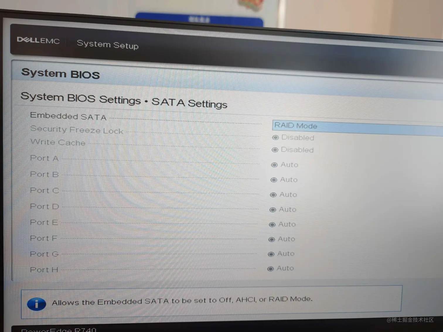 这里将磁盘的模式修改为“RAID Mode”,修改此选项之后才能在后续配置阵列,否则磁盘将以普通模式在系统中单块呈现。