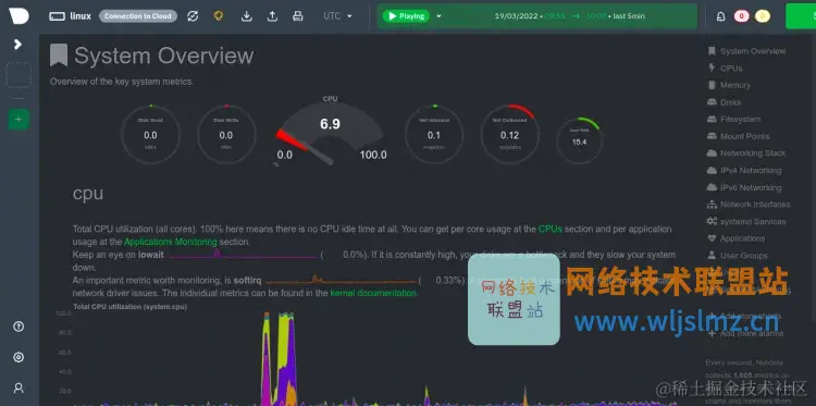 Netdata 是一个免费、开源、实时的服务器监控工具,可以可视化和监控实时数据,如 CPU 使用率、RAM 使用率、负载、SWAP 使用率、带宽使用率、磁盘使用率等。它可以帮助系统管理员了解您的系统或应用程序中正在发生的事情以及刚刚发生的事情。它可以安装在任何物理服务器、虚拟机、容器和物联网设备上。它提供了一个交互式 Web 界面来查看您的服务器指标,并支持用于持久存储的各种数据存储。