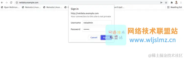 现在,打开您的 Web 浏览器并使用 URL http://your-server-ip 访问 Netdata 仪表板。您应该看到 Netdata 登录页面: