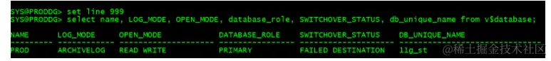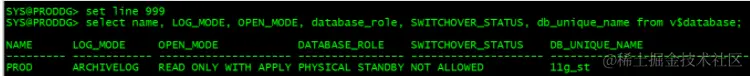 SYS@PRODDG> col DB_UNIQUE_NAME format a10