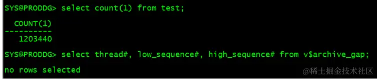 SYS@PRODDG> select count(1) from test;