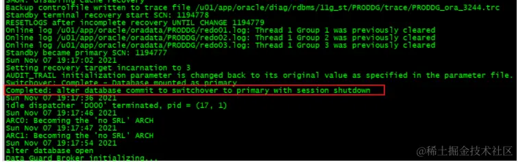 SYS@PRODDG> alter database commit to switchover