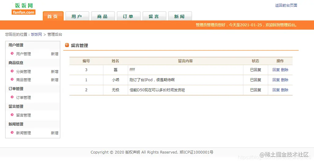 留言管理