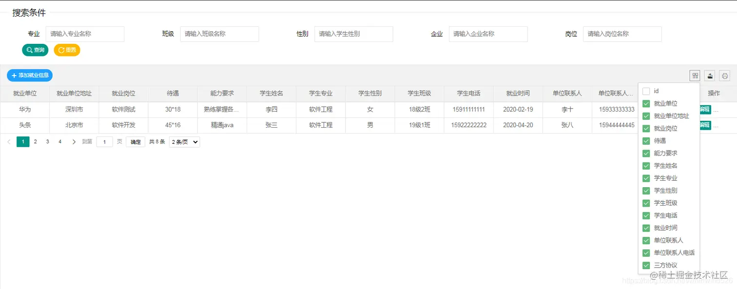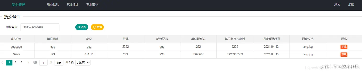 * 分页查询就业信息
