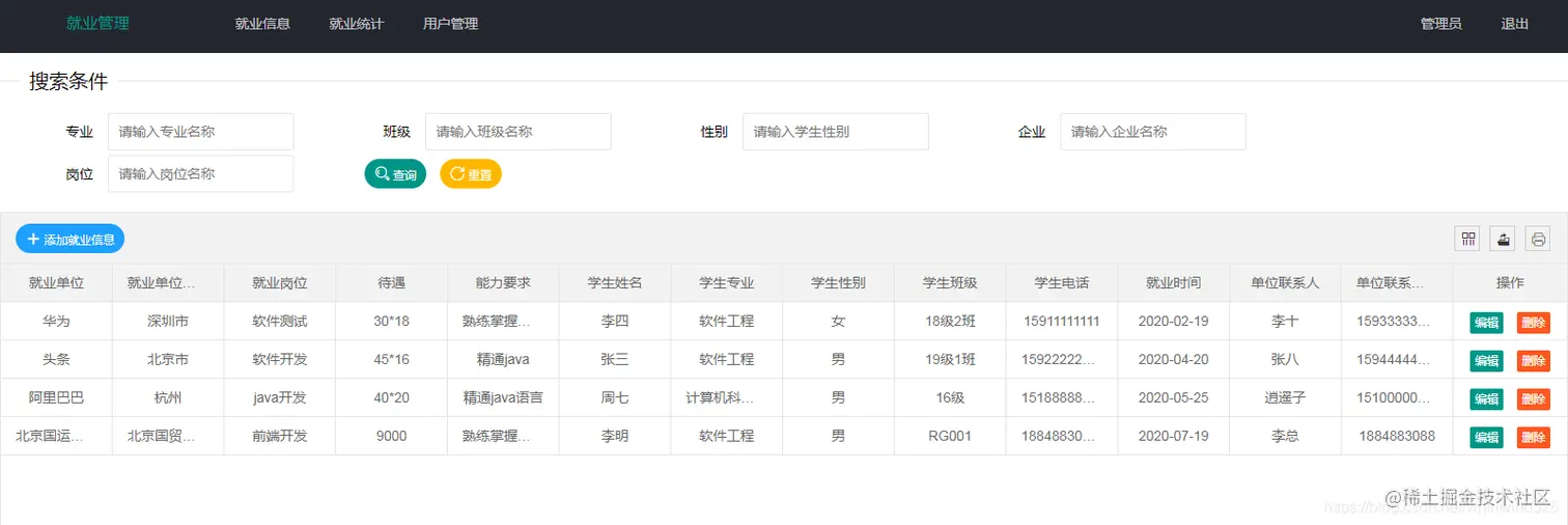 以上是基于springboot实现的就业信息管理系统的基本功能。