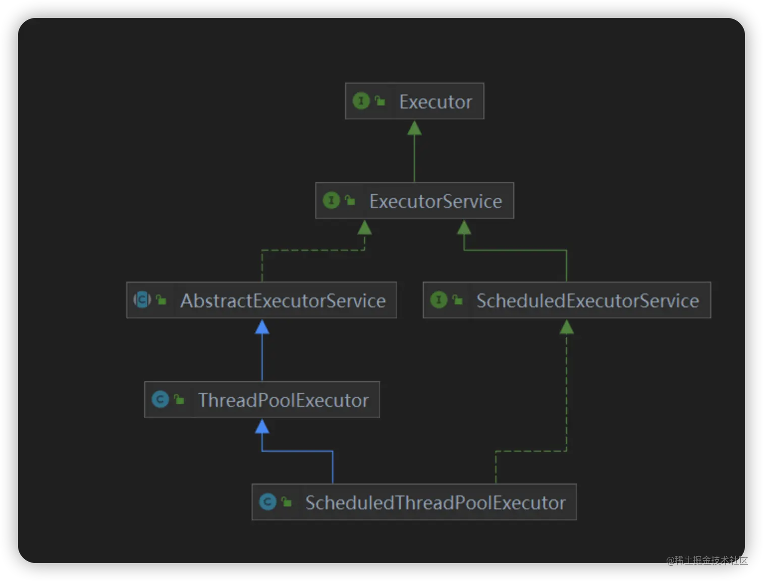 派大星🙋🏻♂️:我了解,其实我上述说的就是为了引出线程池,因为我上面有提到,线程池会有各种的弊端从而导致OutOfMemoryError 异常等,所以才推出了线程池。关于线程池的基本概念上面也大概讲述了,接下来我大致说一下JDK的线程池,看下图: